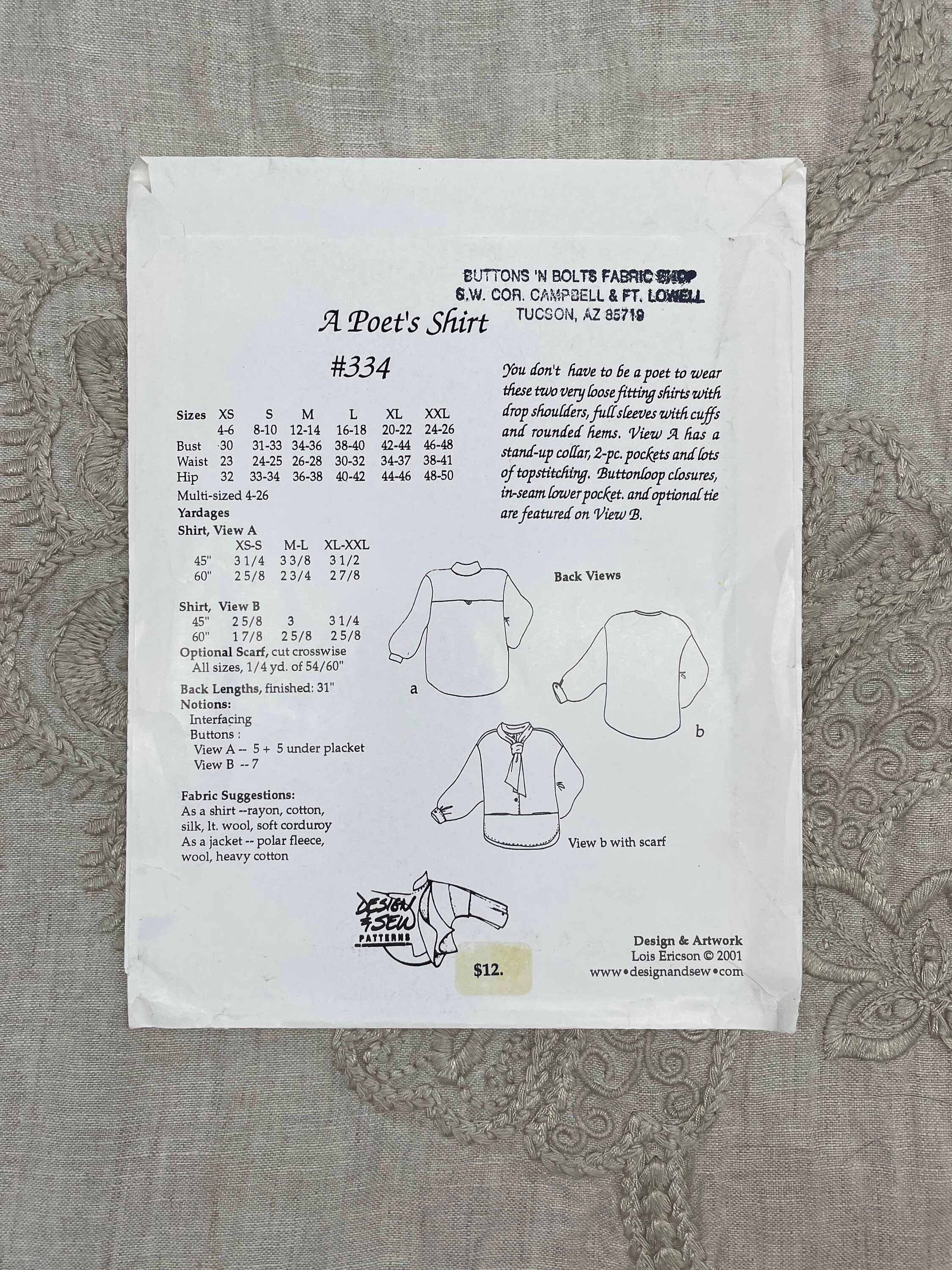 Design Sew 334 A Poet S Shirt Oversized Shirt Pattern Etsy